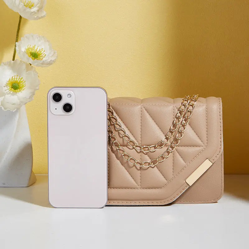 A chic and versatile quilted chain crossbody bag designed for modern women. Crafted from premium PU leather with a stylish geometric quilted pattern and gold-tone chain strap, this elegant handbag is perfect for everyday wear, parties, casual outings, and special occasions.