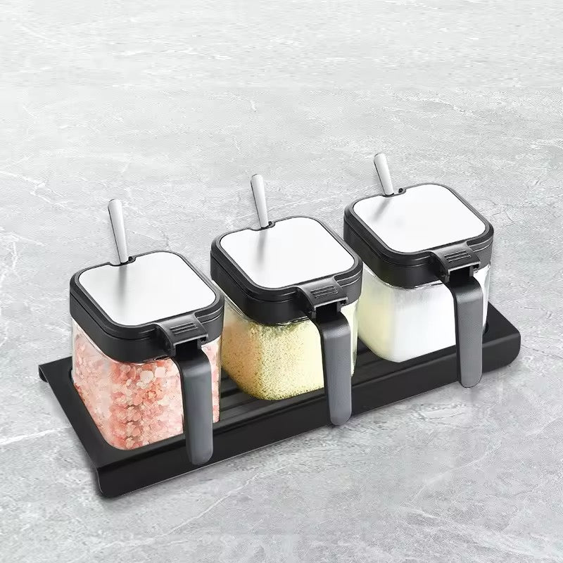Ask about Pack Of Glass Seasoning Jar Heat-Resistant, Moisture-Proof Salt Box with Handle & Spoon Included