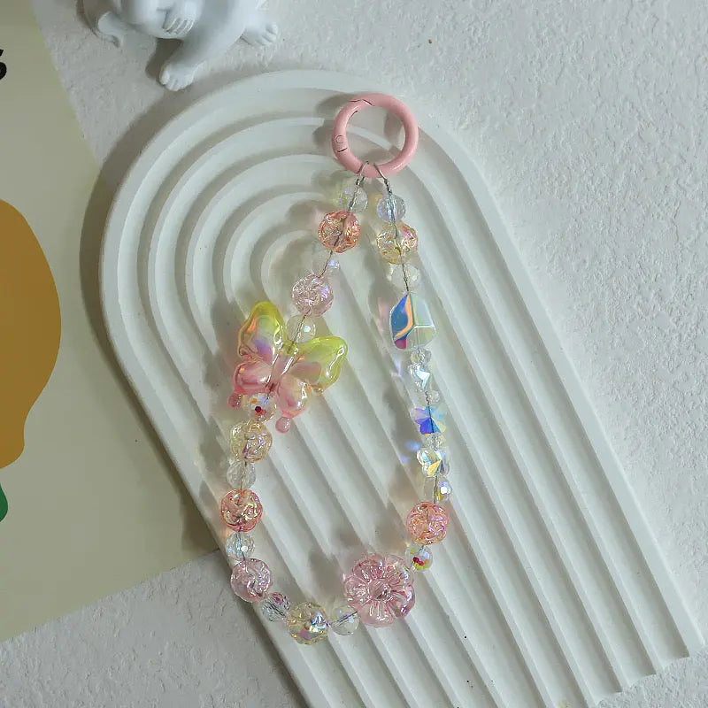 Ask about Kawaii Crystal Butterfly Beaded Phone Charm Strap Aesthetic Rainbow Keychain Bracelet Accessory
