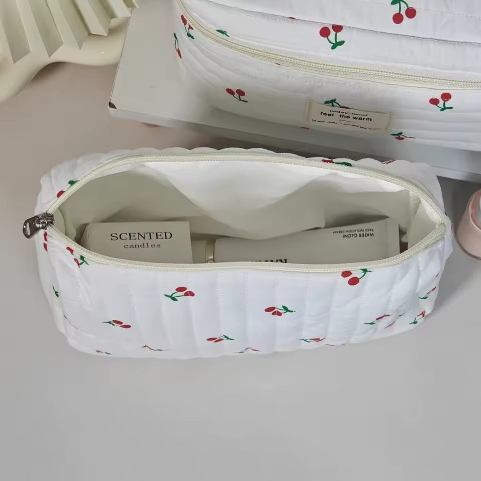 Cherry Design Cosmetic Bag a perfect combination of cuteness and convenience. Featuring a playful cherry print, this large capacity portable storage bag is ideal for organizing makeup, toiletries, skincare, or travel items. Whether you're heading on a trip or simply organizing your vanity, this stylish wash bag keeps everything neatly in place while adding a sweet, feminine touch.